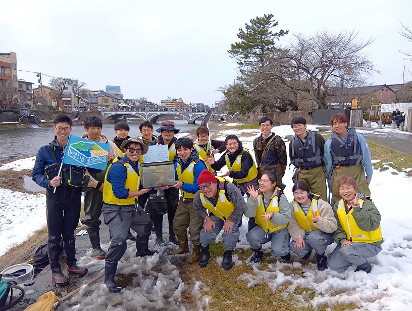 2026年2月14日、北陸地域の官・民・学の有志で構成される「いきいき流域研究会」は、金沢市の浅野川にて「ガサガサの会」を浅の川園遊会館、金沢大学人間社会研究域地域創造学系の坂本貴啓講師(河川・流域まちづくり研究室,先端観光科学研究所併任)とその学生たちが主体となり、浅野川沿いで生物観察を行いました。